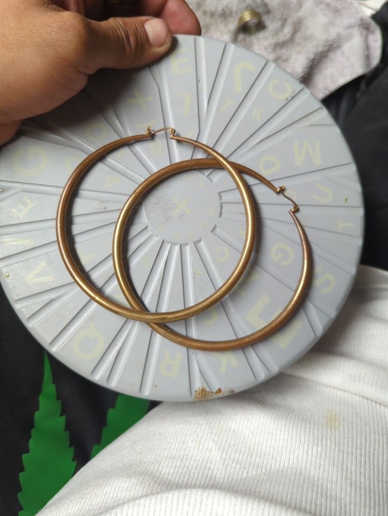 Big brass hoop earring Asking $35 Good condition I can measure it if you need me too and I can give a a good polish before being sold Pick ups only