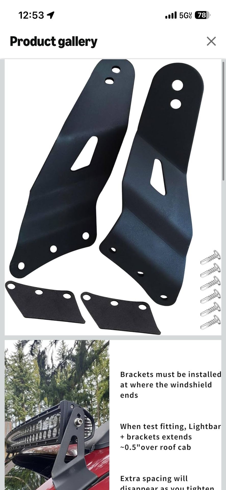 2 Pcs 52" Curved LED Light Bar Mounting Brackets for Upper Windshield - Fits 1(contact info removed) Chevy Silverado, Tahoe, Suburban, Avalanche & GMC Yukon Sierra