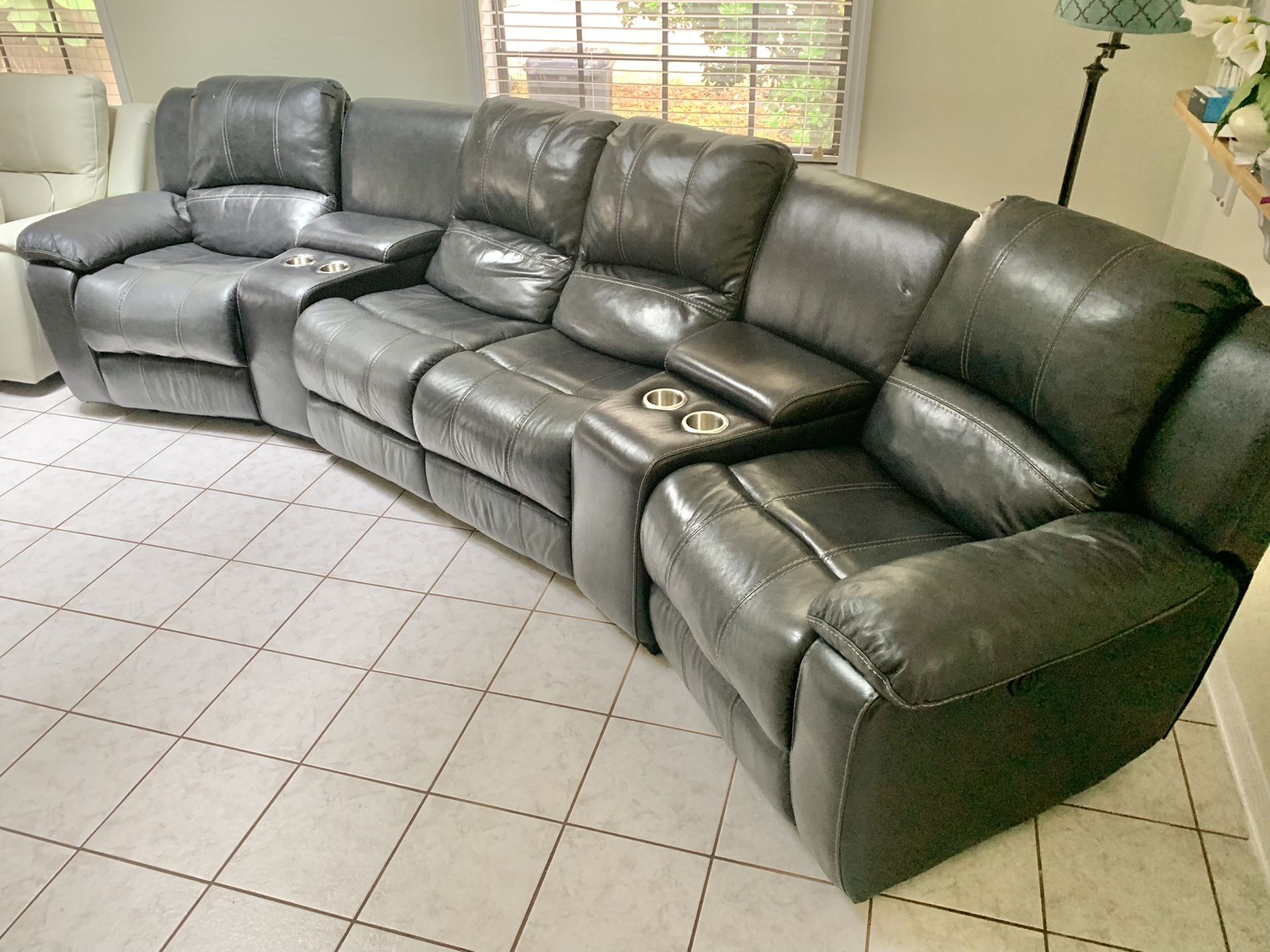 Like New 6 Months Old Leather Electric Quad Reclining Theater Sectional Couch