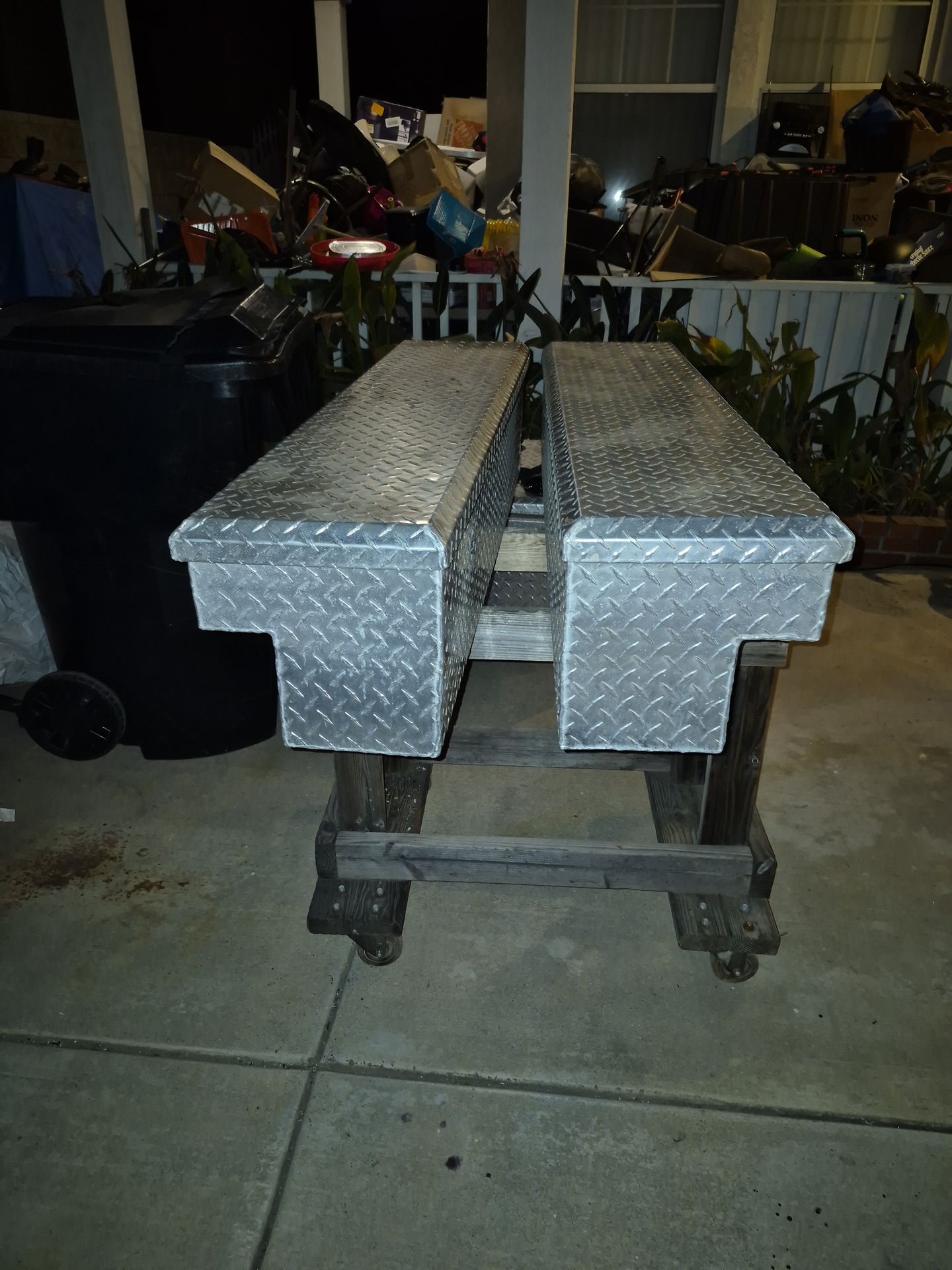 Side set tool boxes no keys in good condition used aluminum light weight 4ft long top 12" 12" deepest