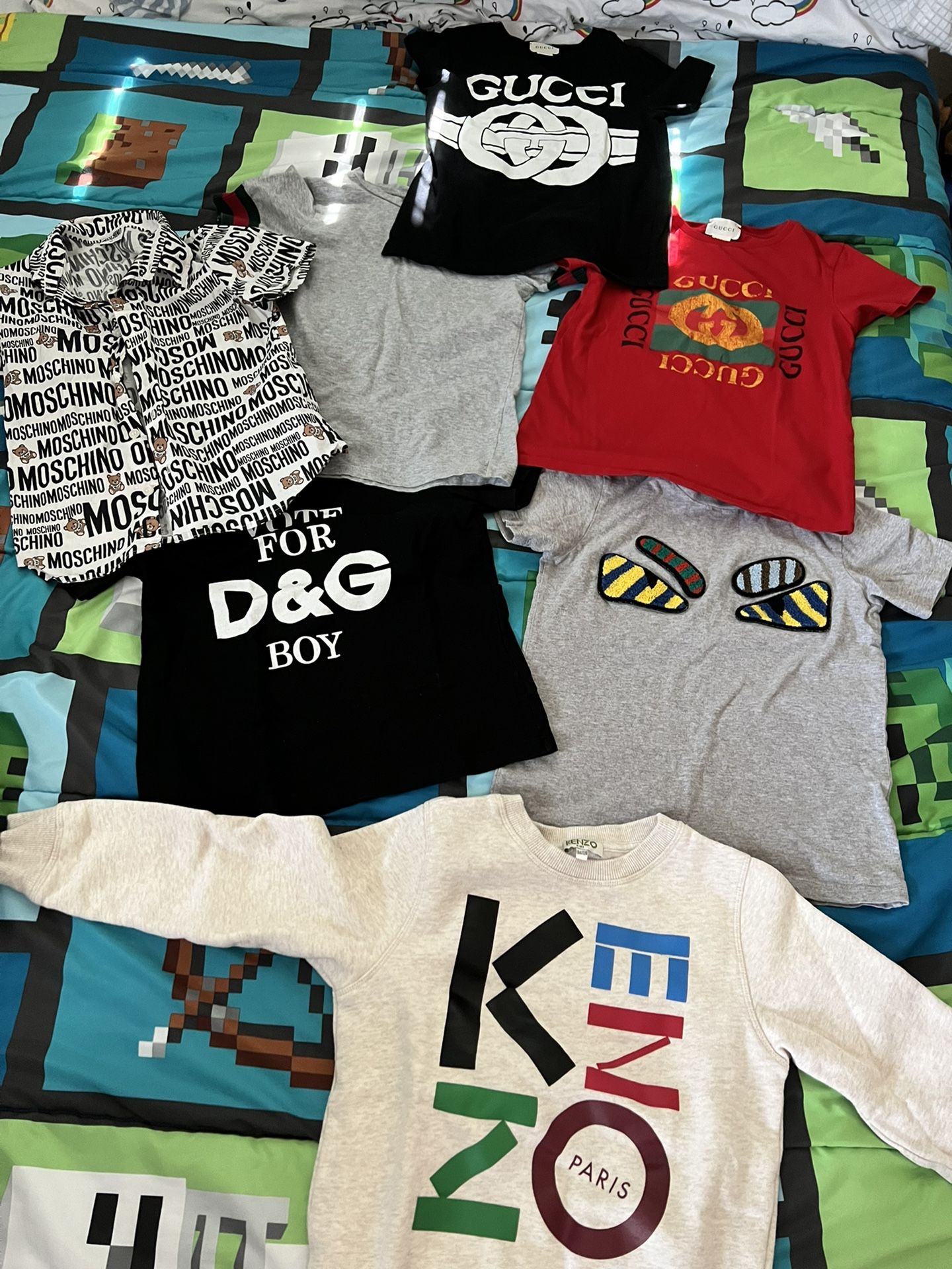 All authentic kids shirts unisex sizes 6-8 years old US. No stains or holes, coming from pet, smoke and COVID FREE home. Slightly used and in very good condition. All t shirts and the sweater have different prices please DM me for pricing. Thanks