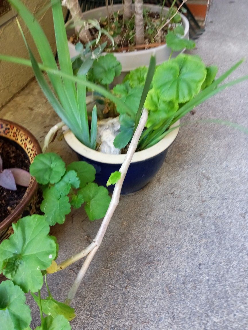 Iris Plant With Gerainium Plant With Oyster Shell