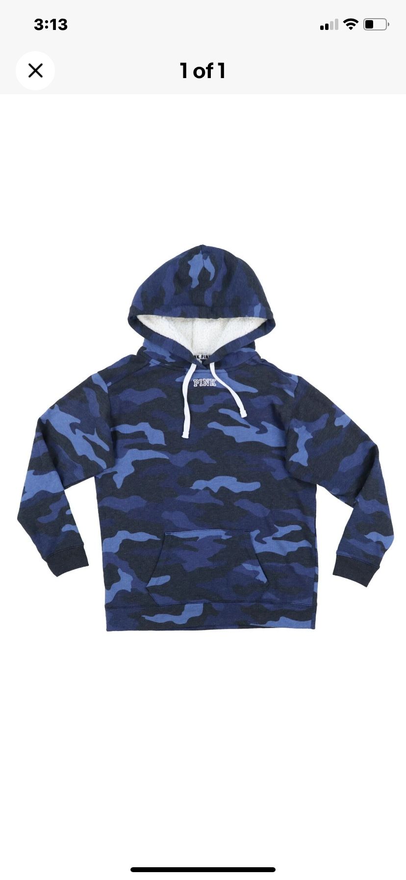 NEW Victorias secret PINK Blue Camo Sherpa Hoodie Size Small