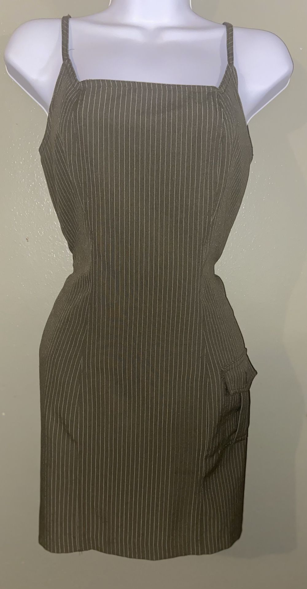 Olive Green Pin Strip Dress