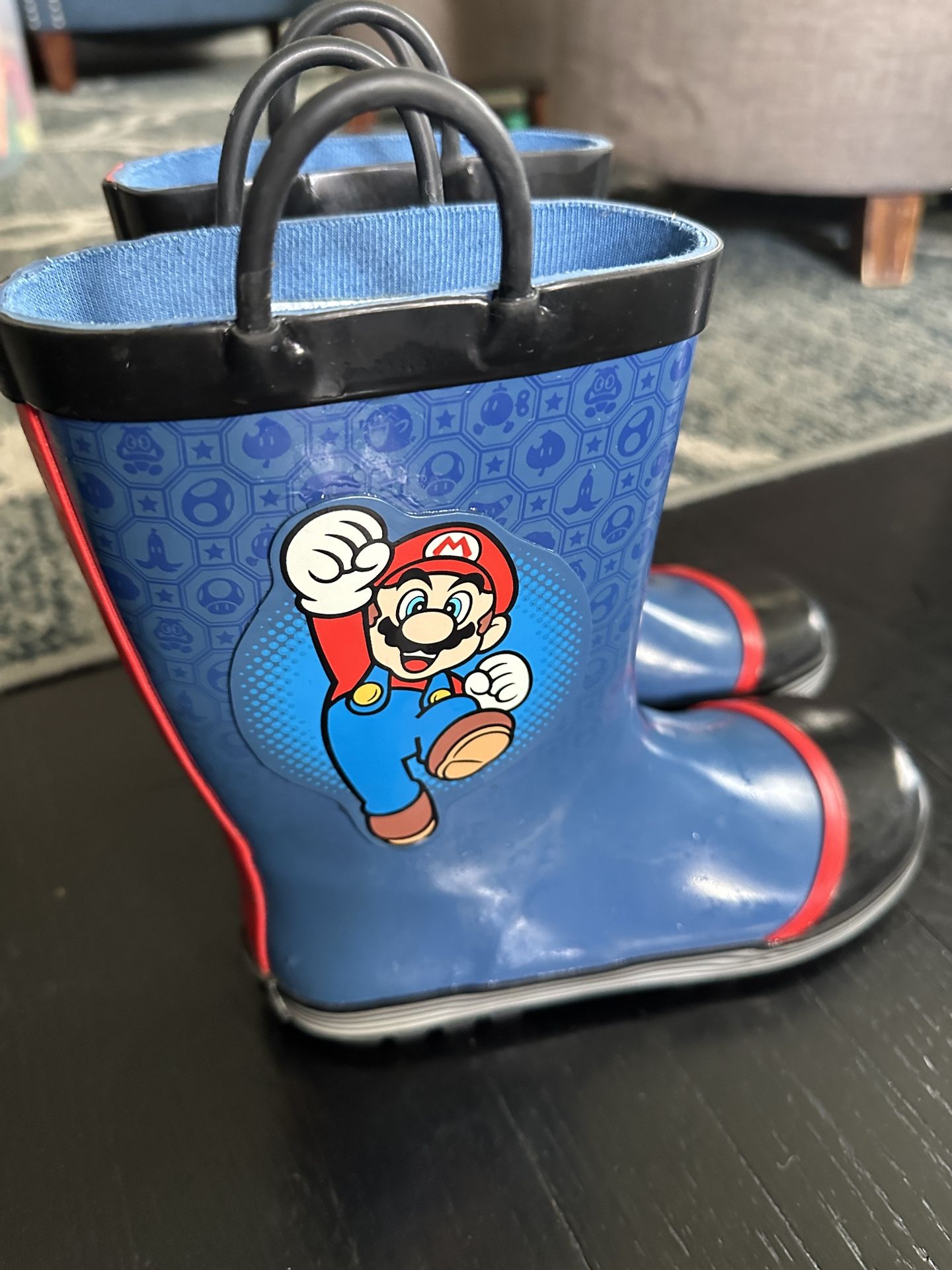 Kids Mario & Luigi Waterproof Rain Boots Size 1-2