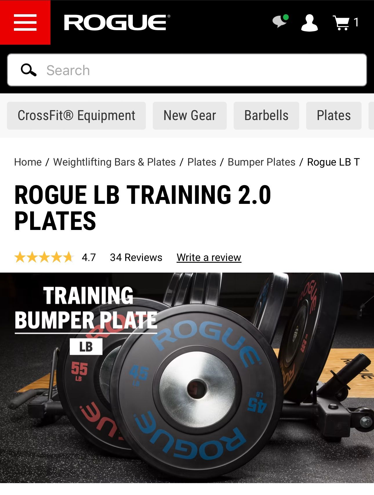 ROGUE LB TRAINING 2.0 PLATES - Black 300 lb set. Two pairs of 45’s, one pair of 35’s, one pair of 25’s. Brand new. Never used. BRAND NEW BRAND NEW BRAND NEW One of the leading heavy-duty, dead-blow bumper plates in the industry—now revamped with new artwork and a gloss-matte-gloss finish. Rogue LB Training 2.0 Plates are manufactured from quality virgin rubber, with a clean surface and zinc-coated steel center plate. The 50.40MM collar opening creates a firm hold on any standard OIympic barbell, and the plates’ thin-cut width enables a higher loading capacity. Sold in pairs or in sets up to 320LB, this version of our LB Training Plates is finished in black with bright, color-coded lettering (full color LB Plates sold separately). The average Shore A durometer for these bumpers is 90, making them ideally suited to the demands of the serious Oly lifter. Expect a consistent dead blow with minimal bounce, even on high impact drops. Rogue guarantees that our LB Training Bumpers are within 15 grams of their claimed weight. If a plate does not conform, it does not ship. Check out the comparison chart on this page to see the width measurements of each plate. Rouge Titan Rep fitness fringe sports Ivanko York Cybex bodymasters CrossFit barbell dumbbell WOD weights weightlifting commercial gym home quality