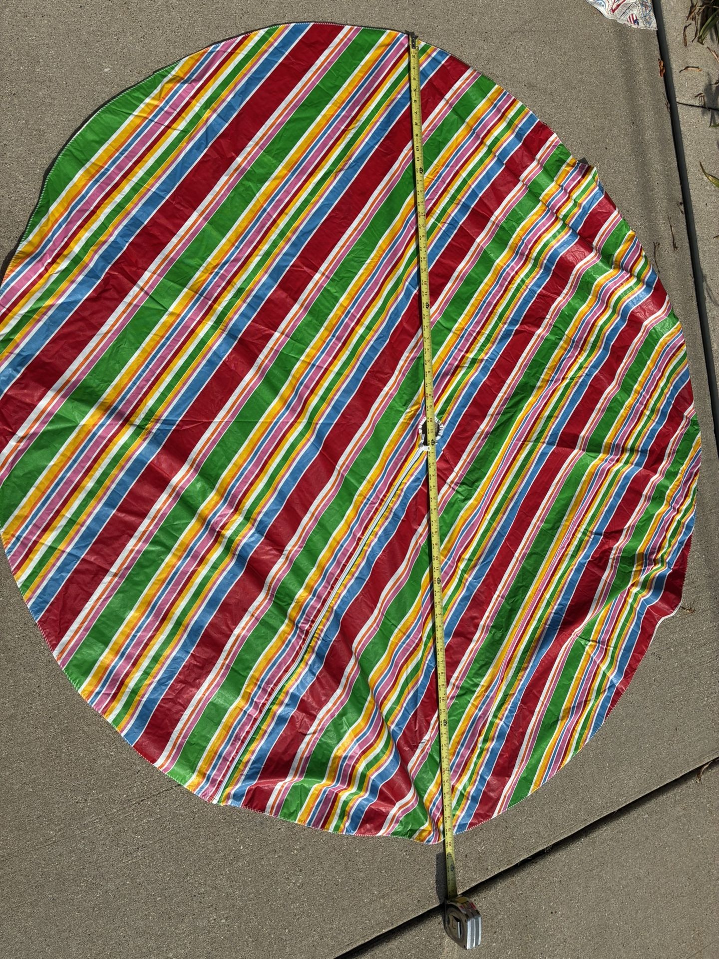Two round plastic table covers. The larger of the two has never been used. Zoom in on picture with tape measure for measurements.