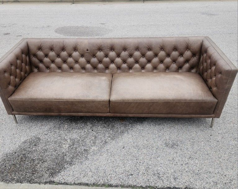 CB2 leather Tufted sofa in good condition no tears just wears overall in good condition Retail $2500 Asking $1300 29"H 92.5"W 35"D Measurements