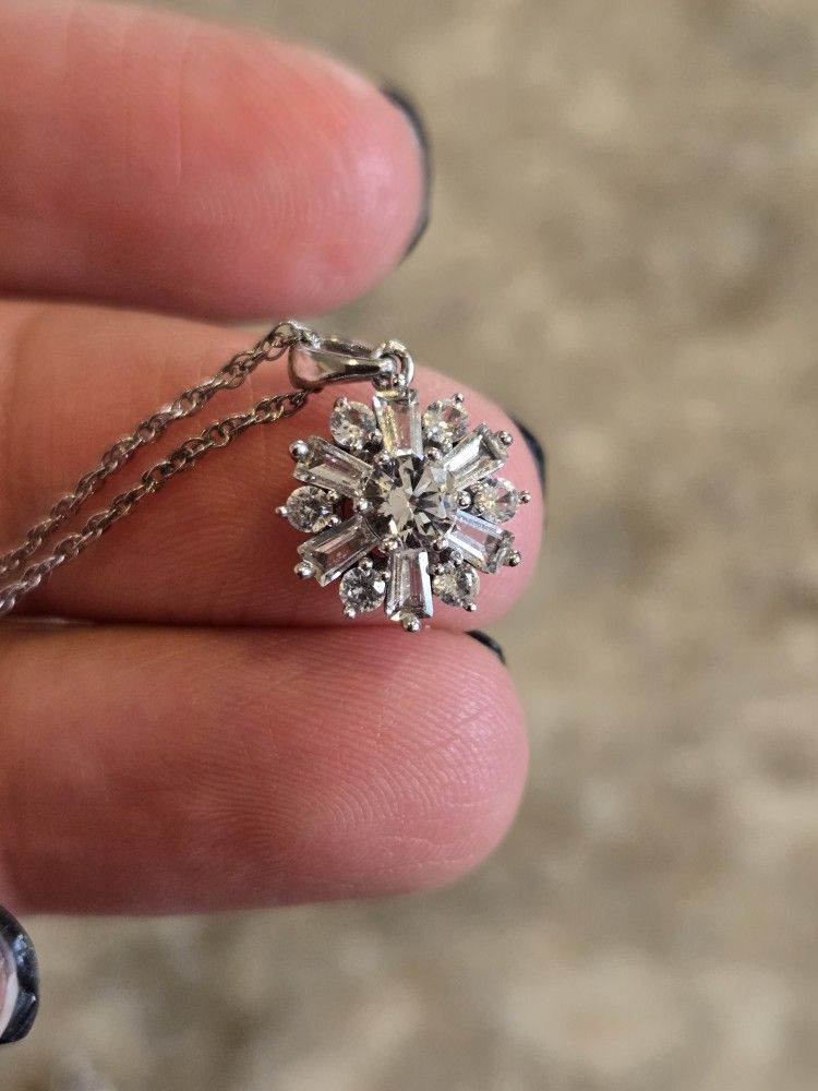 Beautiful Snowflake / Starburst necklace. 925 silver. White sapphire. Like new. Great holiday gift idea for a loved one.