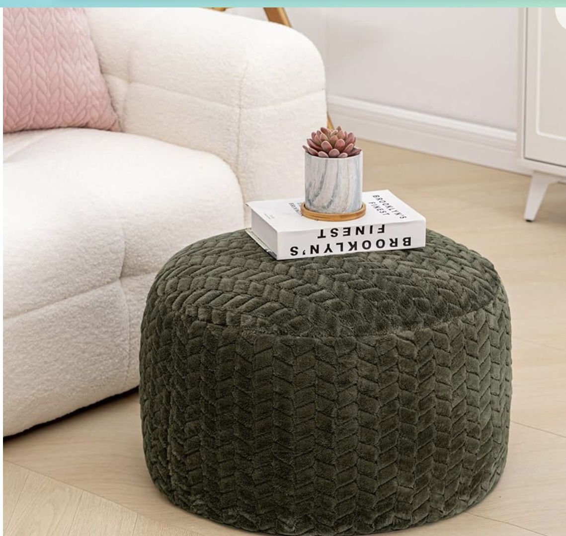 Green Pouf Ottoman Stuffed, Foot Rest with Filler, Floor Pouf, Round Pouf Seat, Floor Bean Bag Brand New Retail $64
