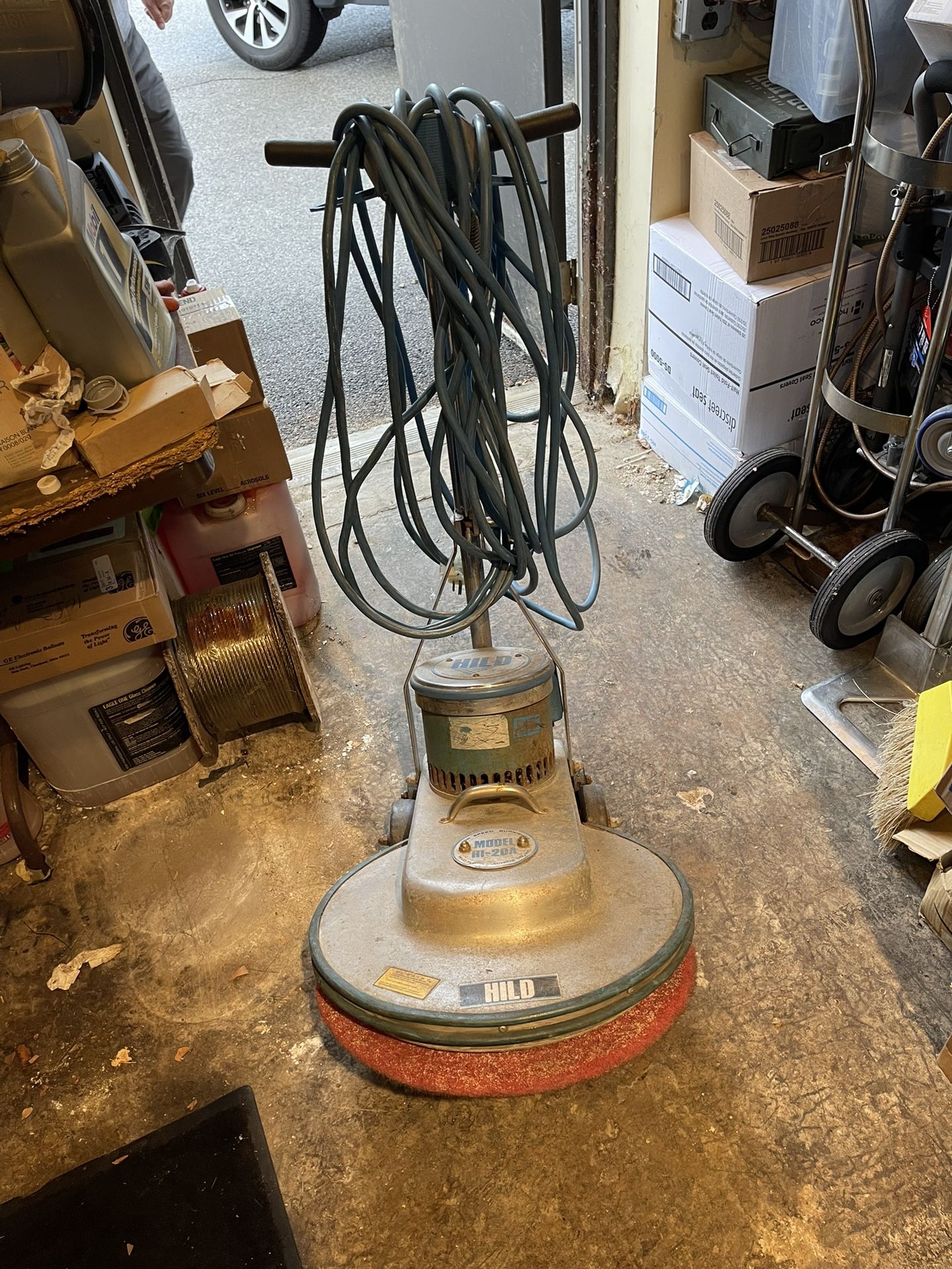 Hild 20 HI-20A Floor Machine Buffer/Burnisher Works Good Brand: Hild Model: HI-20A MPN: 116739 Equipment Type: Buffer Application: Multi-Purpose Style: Walk-Behind Horsepower: 1.5-2 hp Voltage: 115 V Brush & Pad Speed: 1(contact info removed) rpm Features: Adjustable Handle Cord Length: 41-50 ft Country/Region of Manufacture: United States