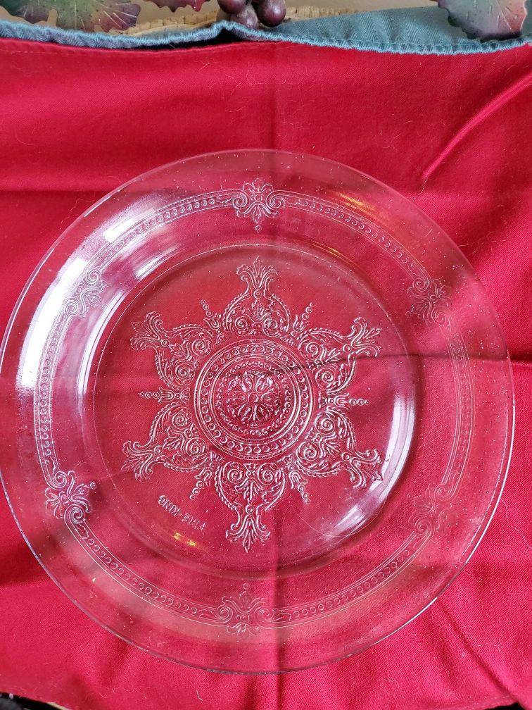 Good condition. No chips, cracks. Pretty etched snowflake in center, and etched design around the sides. $15