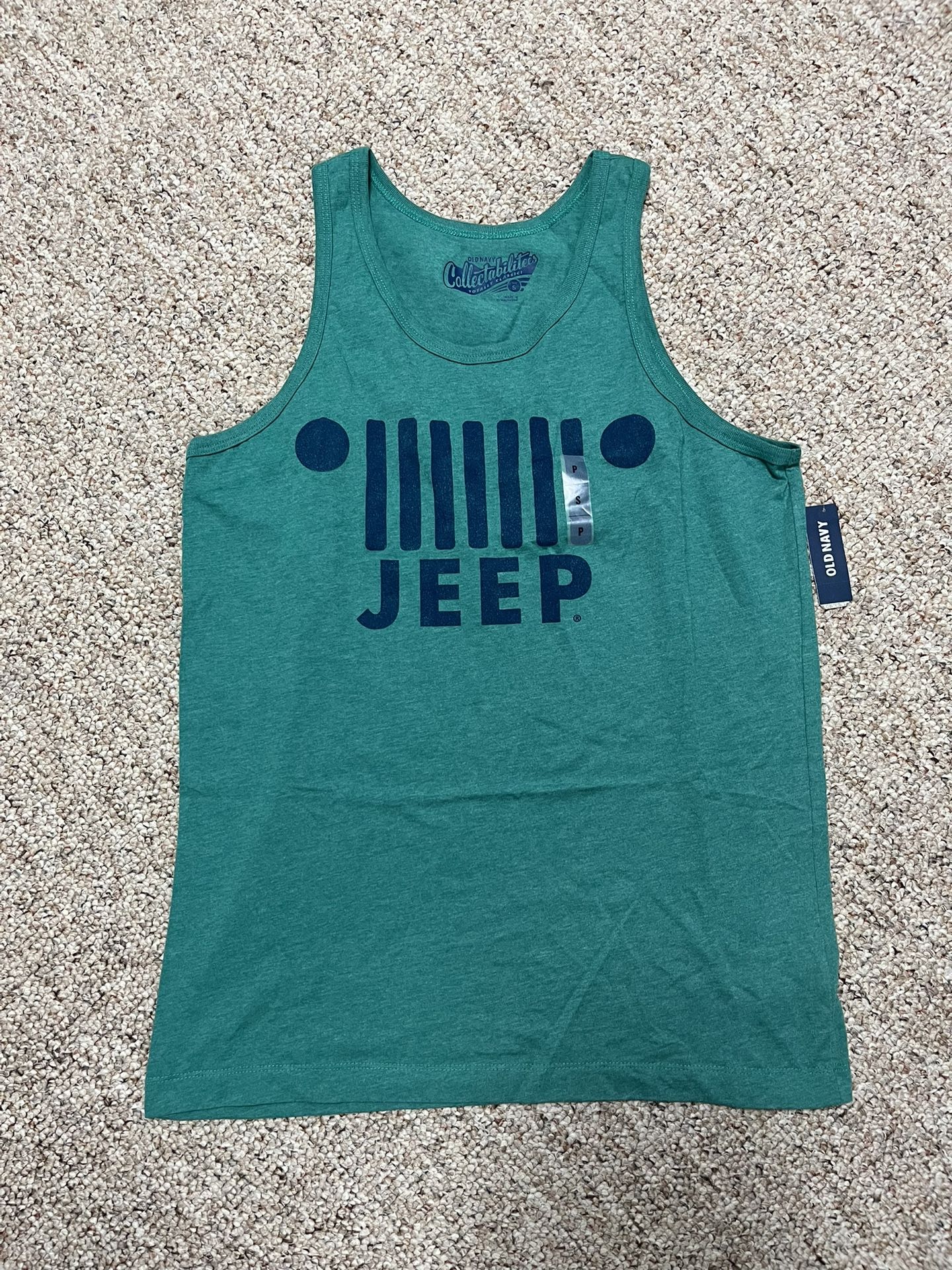 Old Navy Jeep Green Tank Top with Blue Graphic