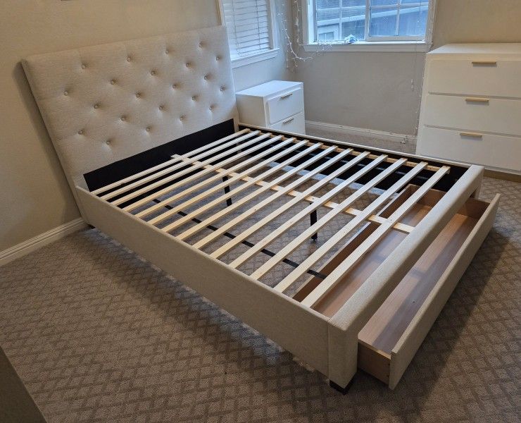 Beige Linen Queen Platform Bed