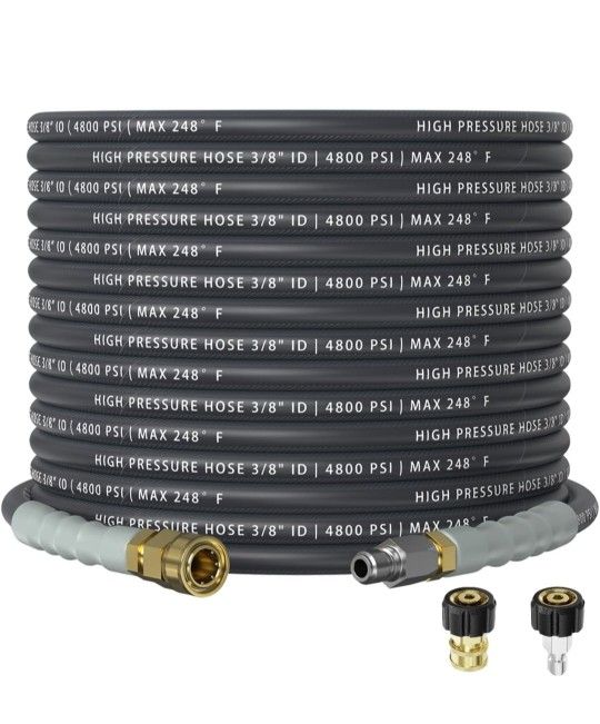 3/8" 4800PSI Pressure Washer Hose 50FT with 360° Swivel Quick Connect, Flexible & Kink Resistant Steel Wire Braided & Durable for Hot/Cold Water, High Power Washer Hose With M22 14mm Adapter $75