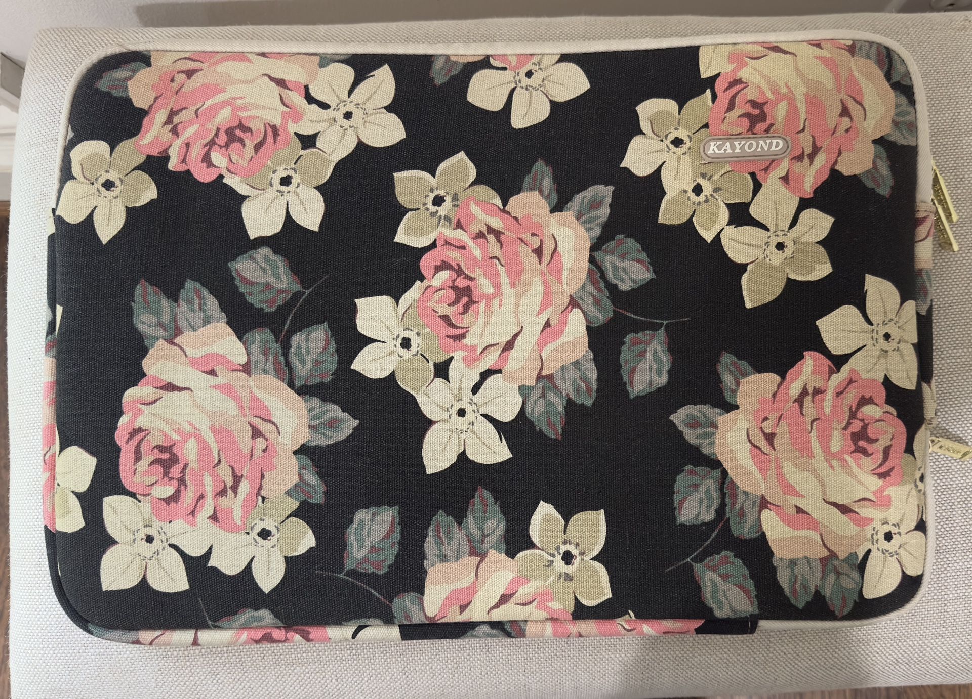 Black Rose Canvas Water-Resistant 15.6 Inch Laptop Sleeve case padded protector pink cottage core