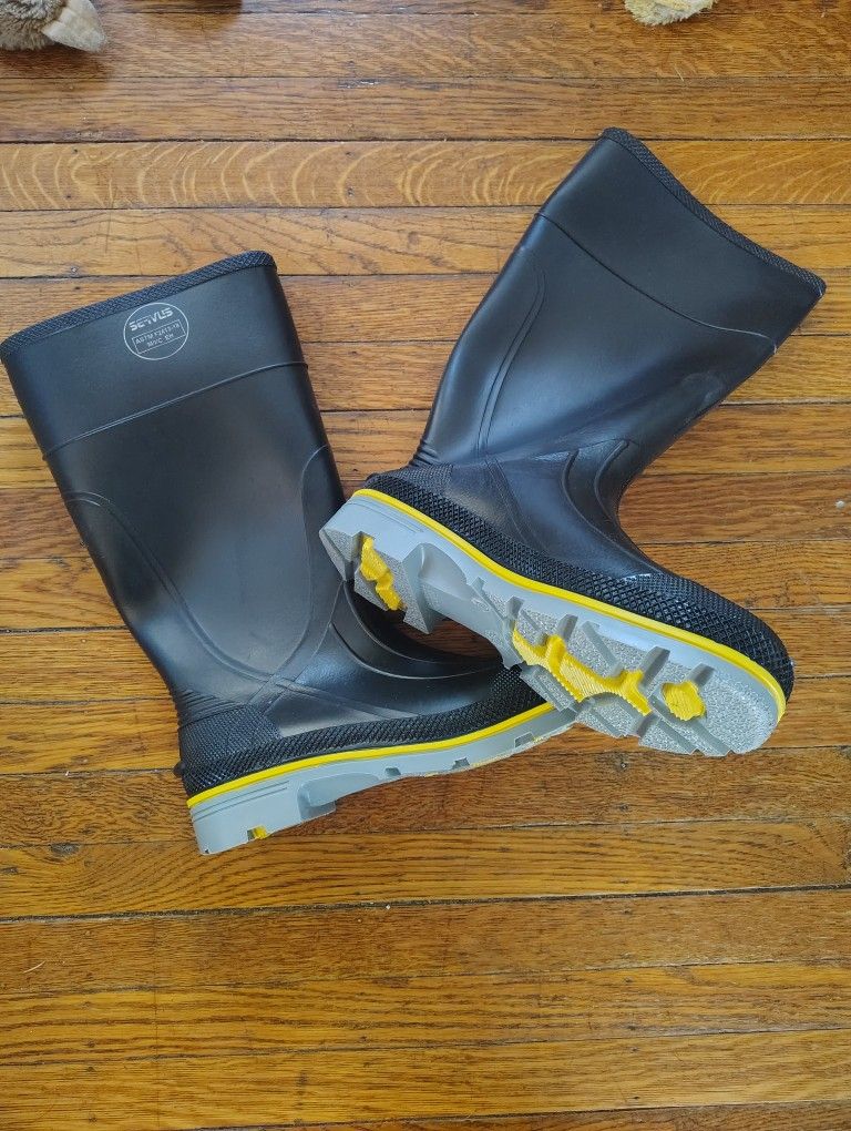 Servus size 10 oil resistant, steel toe rubber boots. Brand new never used $20 cash or id trade for size 10.5 or 11 non slip kitchen boots
