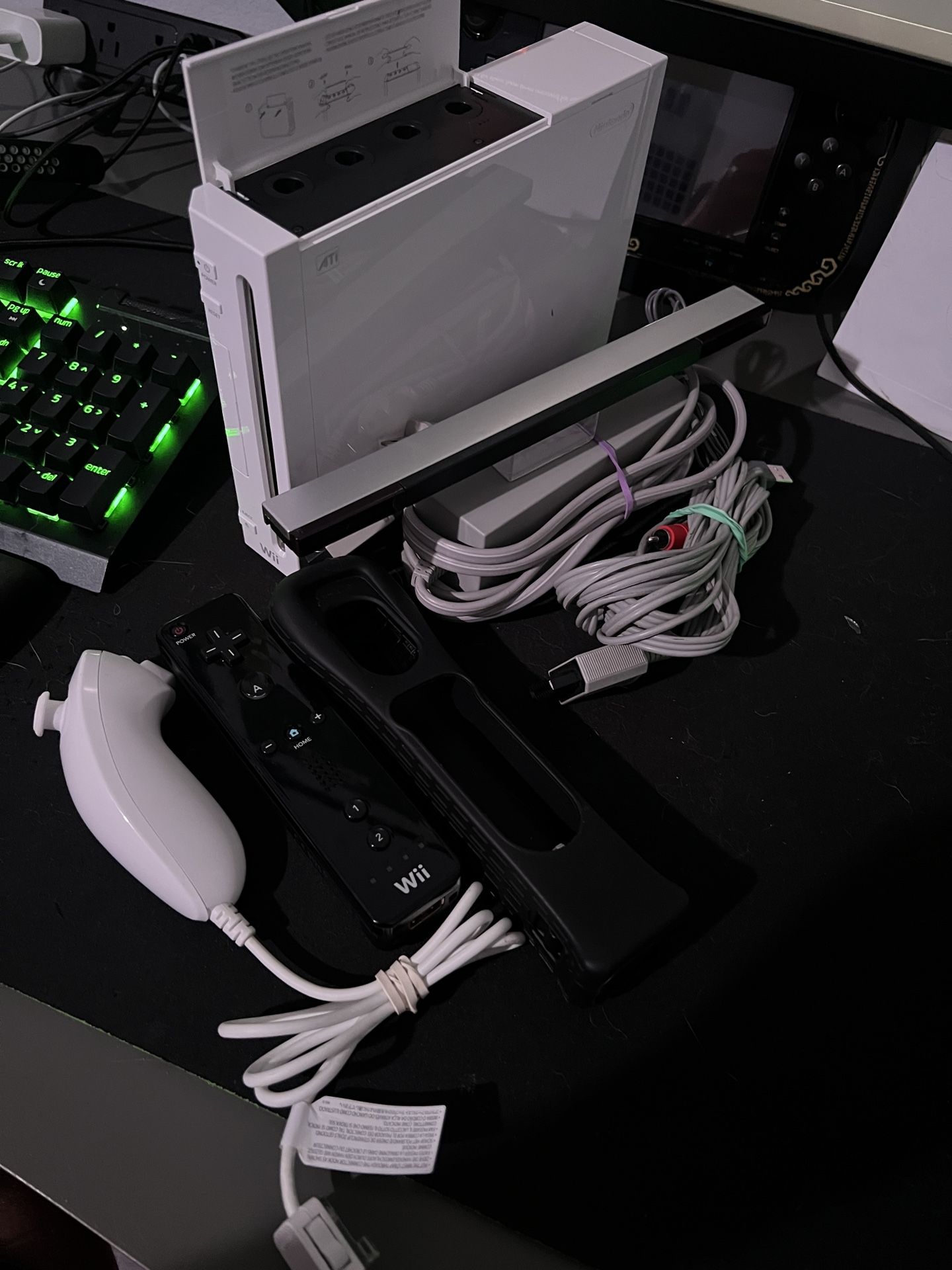 Loaded with a great selection of Wii and GameCube classics, including heavy hitters like Mario, Zelda, Resident Evil, Wii Sports, Animal Crossing, Pokémon, and more. Also includes a large library of SNES games. If you’re looking for a specific title or if you have any questions, feel free to message me and ask. Includes power cable, av cable, sensor bar, wiimote + nunchuk with a Wii motion plus attachment.