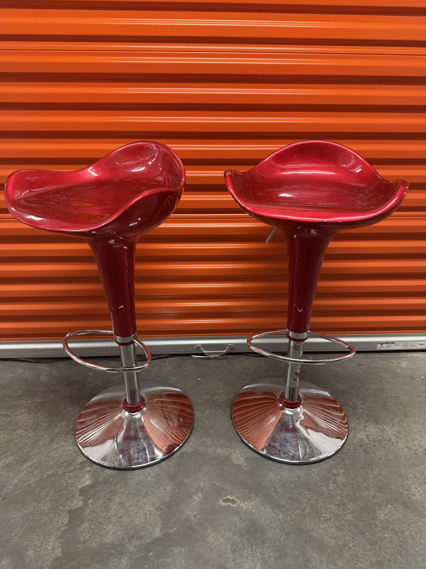 Set of 2 Red Adjustable Swivel Bar Stools Chrome Base Modern