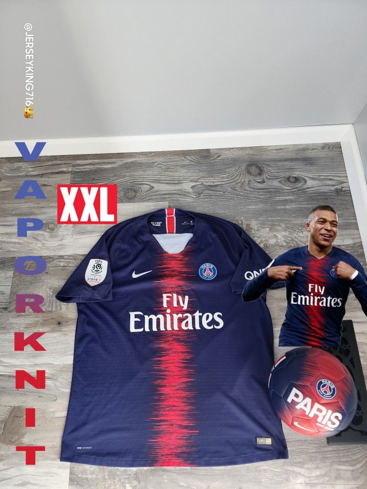 I have here super rare vaporknit jersey from 18/19 season. This is what the players wear and retail for over $200 as it has the best player in the world name on the back mbappe #7. As I type this I guarantee this is the only one for sale on the resell market. I post PSG jersey daily so please check out my page. Please ask questions no returns or refunds I ship same or next day guaranteed. 100% positive feedback so buy with confidence. **All jerseys with name sets should be washed inside out on delicate settings. Hand washing is preferred. Also it should never be put in a dryer, it needs to be air dryed.** IG: Jerseyking716