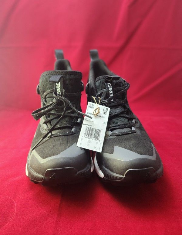 Women's Sizes 8 and 9 available! Next-generation hiking shoes made in part with recycled materials. Hike further. Explore more. Enjoy the view. From thru-hikes to weekend explorations, these lightweight hiking shoes offer next-level comfort and support to extend your range in the mountains. A BOOST midsole brings energy to every step to keep you moving on hikes long and short. A GORE-TEX membrane seals out wet conditions while letting your feet breathe as they warm up. The soft, supportive upper and gusseted tongue hug your foot with form-fitting comfort that seals out debris and lets you hike longer. An internal frame and heel support add the stability to move with confidence over rocky terrain and uneven ground, and the Continental Rubber outsole maintains confident traction whether it's wet or dry. By choosing recycled, we are able to reuse materials that have already been created, which helps to reduce waste. Renewable materials choices will help us to remove our reliance on finite resources. Our products made with a blend of recycled and renewable materials feature at least 20% total of these materials.