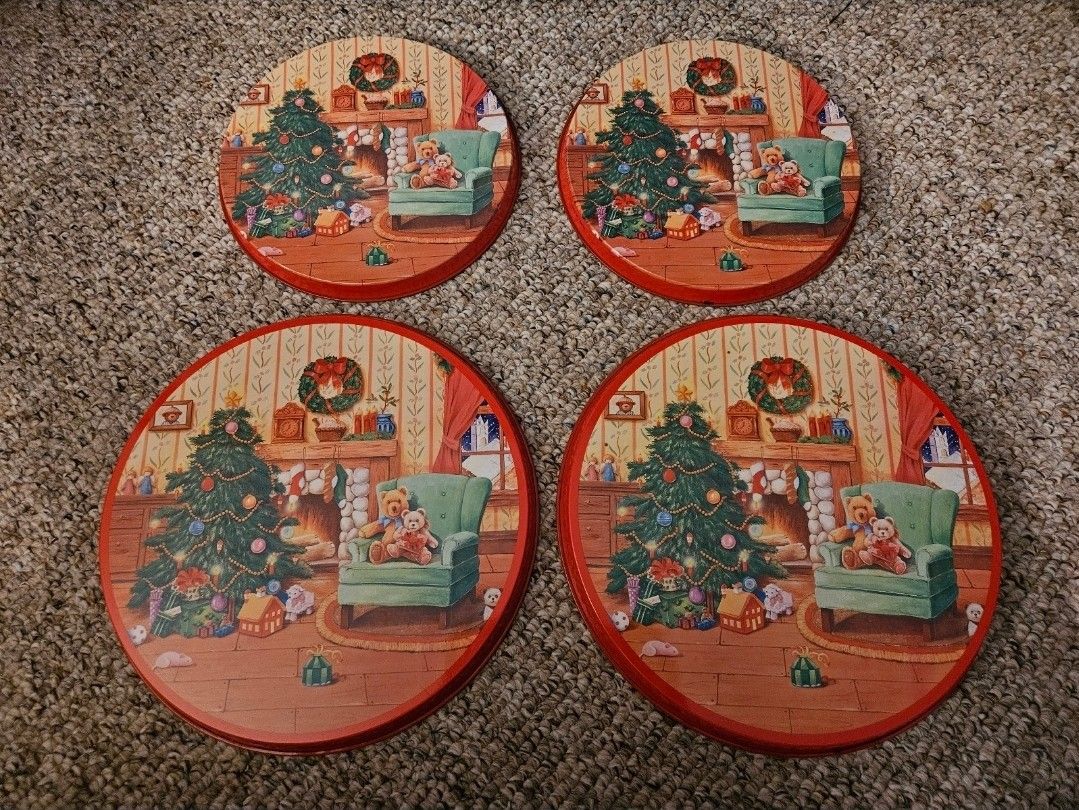 4 Christmas Themed Round Metal Red Stove Top Covers