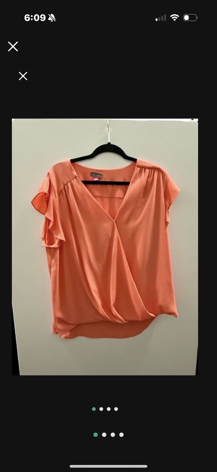 Size large NWT light coral faux wrap blouse - has button snap at chest. Vince Camuto brand - purchased from Dillards. Retails $79 Pick up 95th Ave / Happy Valley