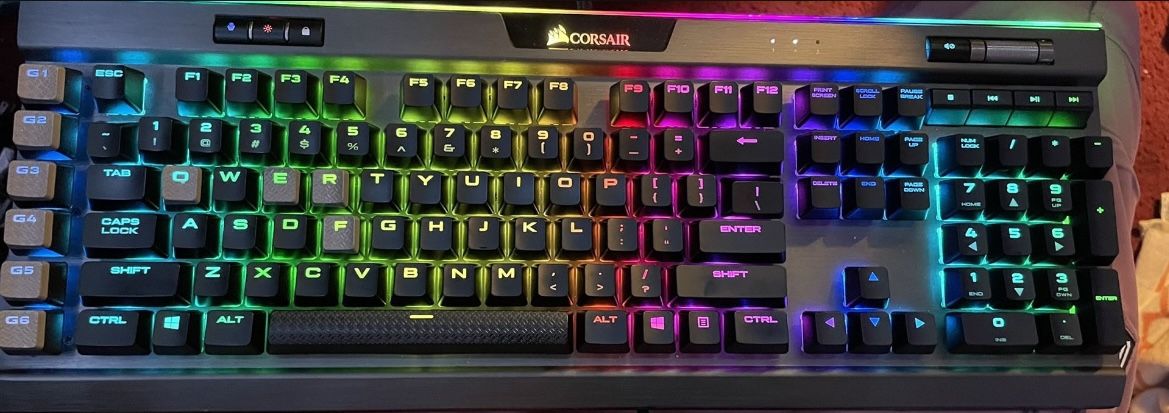 For sale is a Corsair K95 gaming pc keyboard, works great! Selling cause I got a 60% keyboard recently. Switches are Cherry MX Speeds, perfect for gaming! Unfortunately I lost the wrist pad. NO DELIVERIES. Open to offers :)