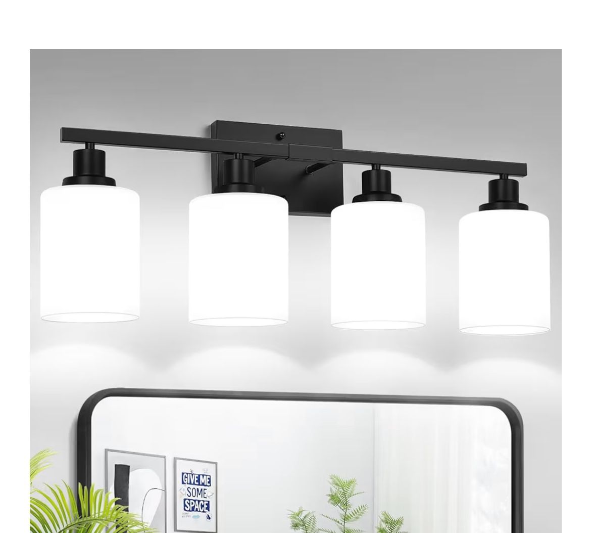 4-Light Bathroom Light Fixtures, Vanity Light with Milky White Shades, Matte Black Bathroom Light Fixtures Over Mirror