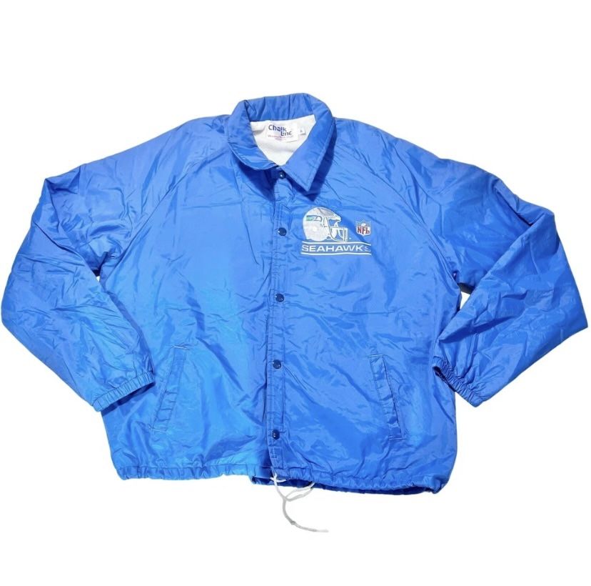 Introducing a Seattle Seahawks Chalk Line jacket in size XL, in blue, vintage 80’s–90’s style. This item is in good used condition. You will receive the exact item pictured. Please contact us with any questions or concerns. Customer satisfaction is our priority. Thank you! The Happy Face Shop