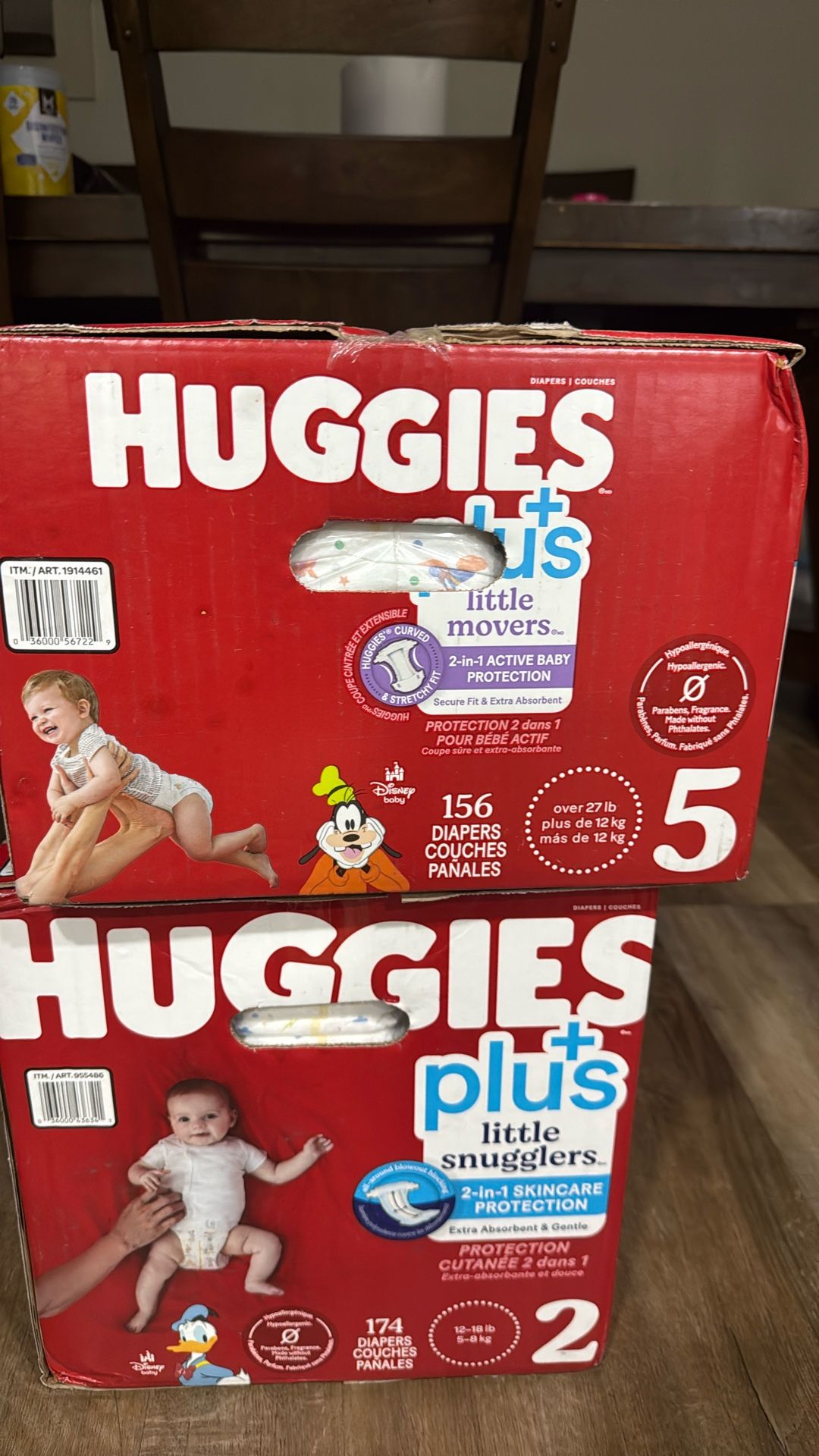 Huggies diaper large box sizes 4 boxes of size 2 and 1 size 3 left No low balls firm. Already saving with no tax added