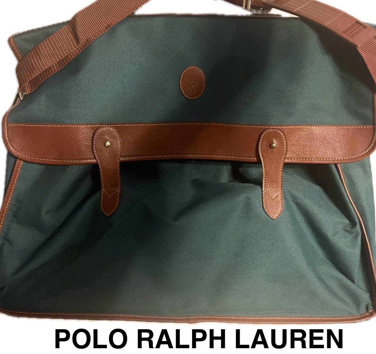 Polo Ralph Lauren Briefcase With Shoulder Strap Size 20x15 Green Brown Leather canvas Green Looks new