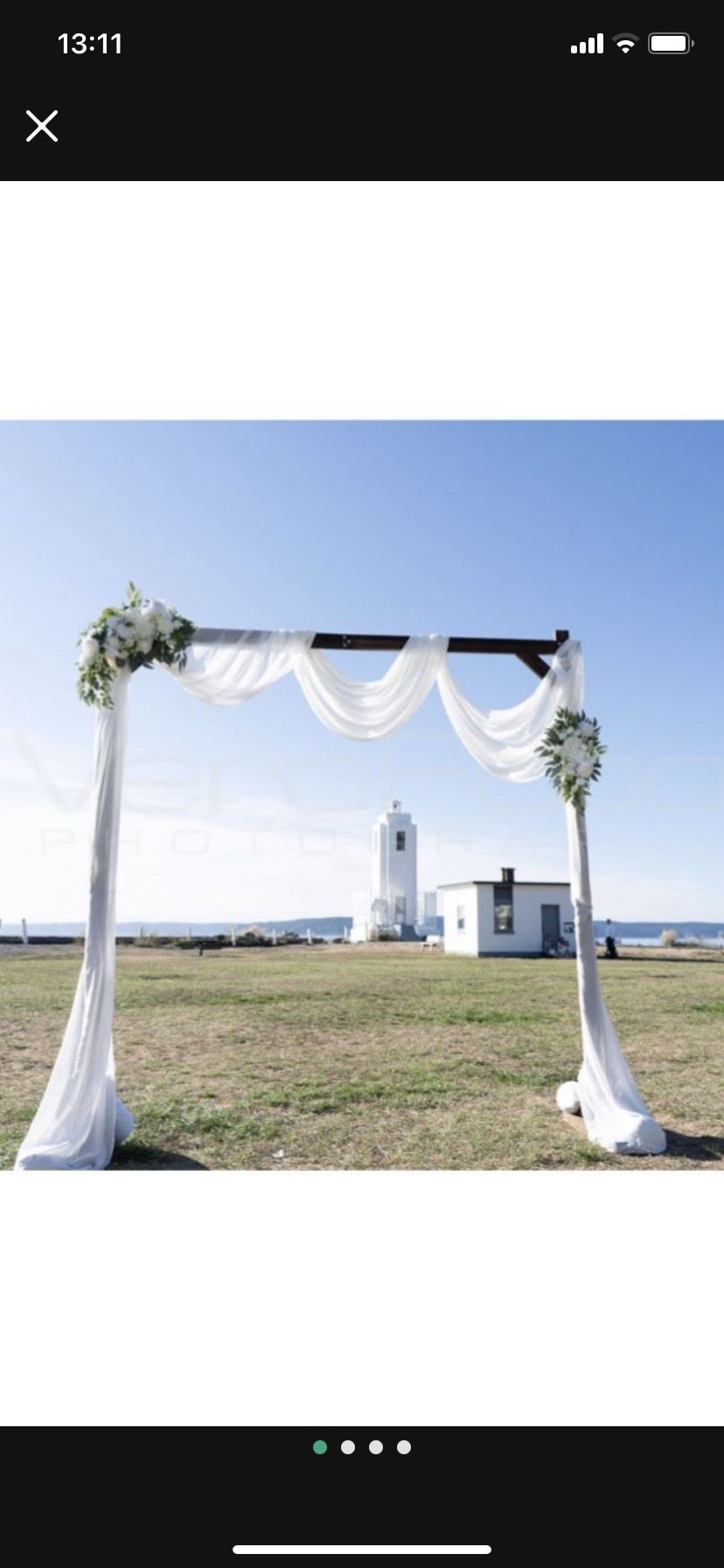 Selling our 7.3 x 7.3 wedding arch - it is well built and sturdy yet lightweight enough to easily carry and set up. $90 for everything OR sold separately: Arch $50 Arch fabric $15 Arch flowers $15 White sand bags $10