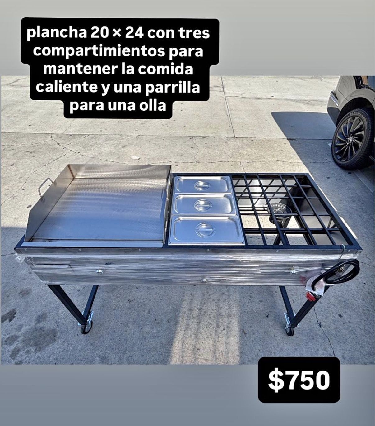 plancha para cocinar 20 × 24 con tres compartimientos para mantener la comida caliente y parrilla