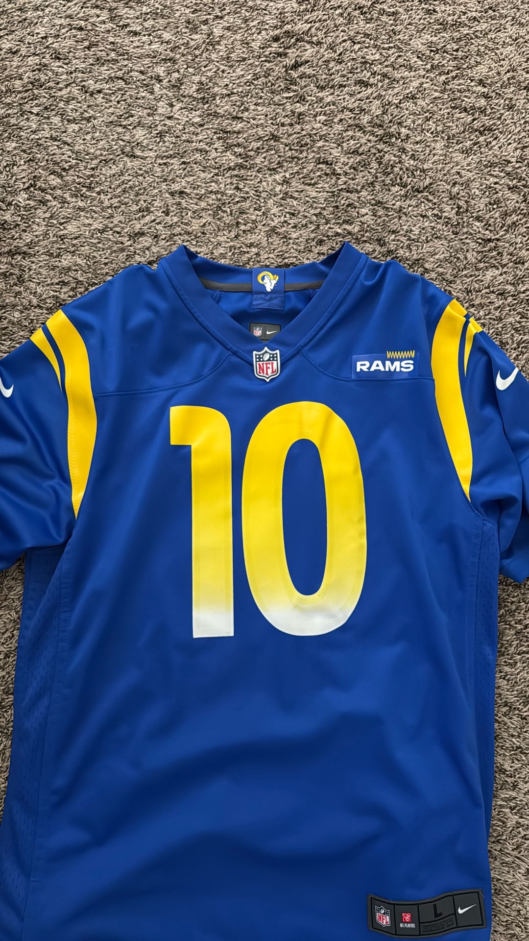 Rams jersey royal color way. Size large . Good condition. Asking for 40$ willing to hear offers cash only though. Pick up only In highland.