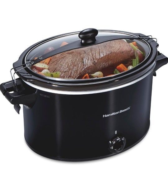 Hamilton Beach Slow Cooker, Extra Large 10 Quart, Stay or Go Portable With Lid Lock, Dishwasher Safe Crock, Black • PERFECT FOR A LARGE GATHERING: The 10 quart slow cooker lets you cook enough food for a gathering of 12 or more people and fits a 10 lb. turkey or a 12 lb. roast. • REDUCE SPILLS: The lid clips tightly to the slow cooker handles to reduce messy spills when transporting food. Carry hot meals to family gatherings, potlucks or to serve at the table without worrying about spills. • COOK FLAVORFUL MEALS WITH MINIMAL EFFORT: This Hamilton Beach slow cooker has simple controls that make it easy for you to create flavorful meals with minimal effort and great results. Just turn the dial. No watching needed. • MAINTAIN THE IDEAL TEMPERATURE WITH 3 HEAT SETTINGS: Just turn the dial to choose from 3 heat settings. Cook your meal on Low or High, and then switch to Warm when cooking is complete for food that's warm and ready when it's time to eat. • EASY TO CARRY WITH FULL-GRIP HANDLES: The large slow cooker is easy to lift and hold onto when carrying to the table to serve a meal or when taking food to gatherings. • SIMPLE TO CLEAN: The removable stoneware crock and glass lid are dishwasher safe for easy cleanup.