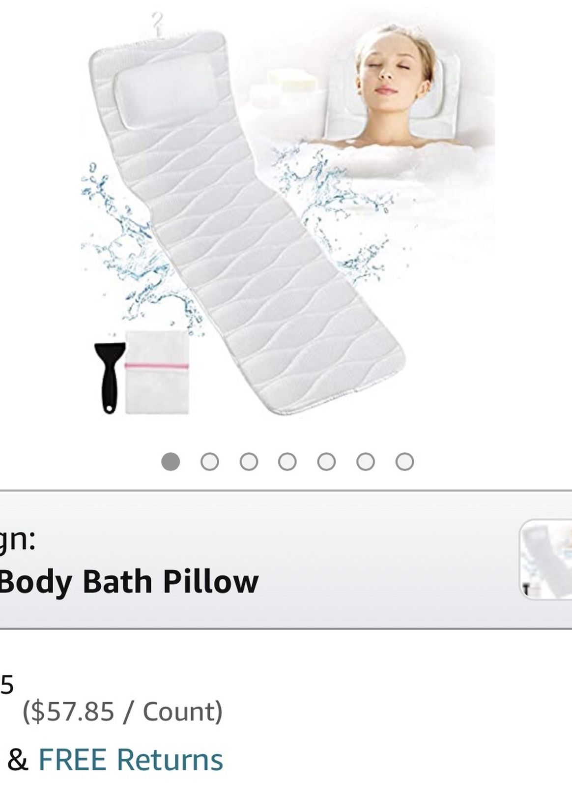 Bath pillow. Received as a gift and used a couple times, but I’m a bath minimalist. A couple of the suction cups aren’t as well attached as they once were (see pic) likely due to my own user error of yanking it off instead of sliding the suction cups to release but still works perfectly fine.