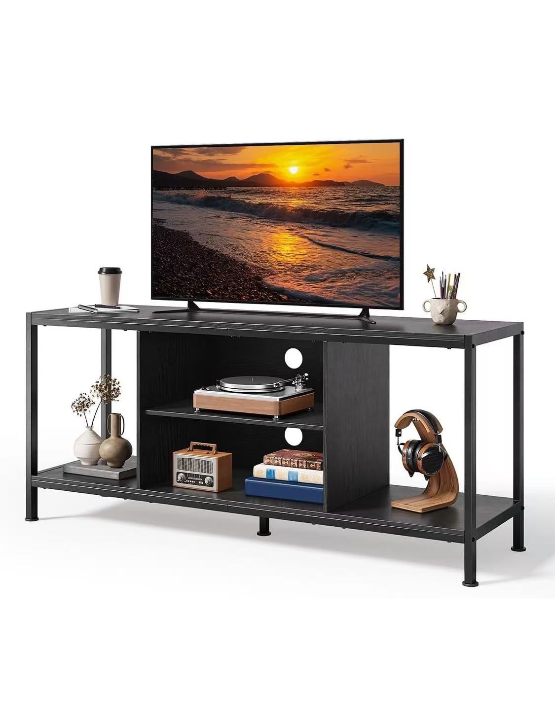 Gizoon TV Stand for TVs up to 65 Inch,Entertainment Center with Open Storage Shelves, TV Media Console Table for Living Room and Bedroom, Black$50