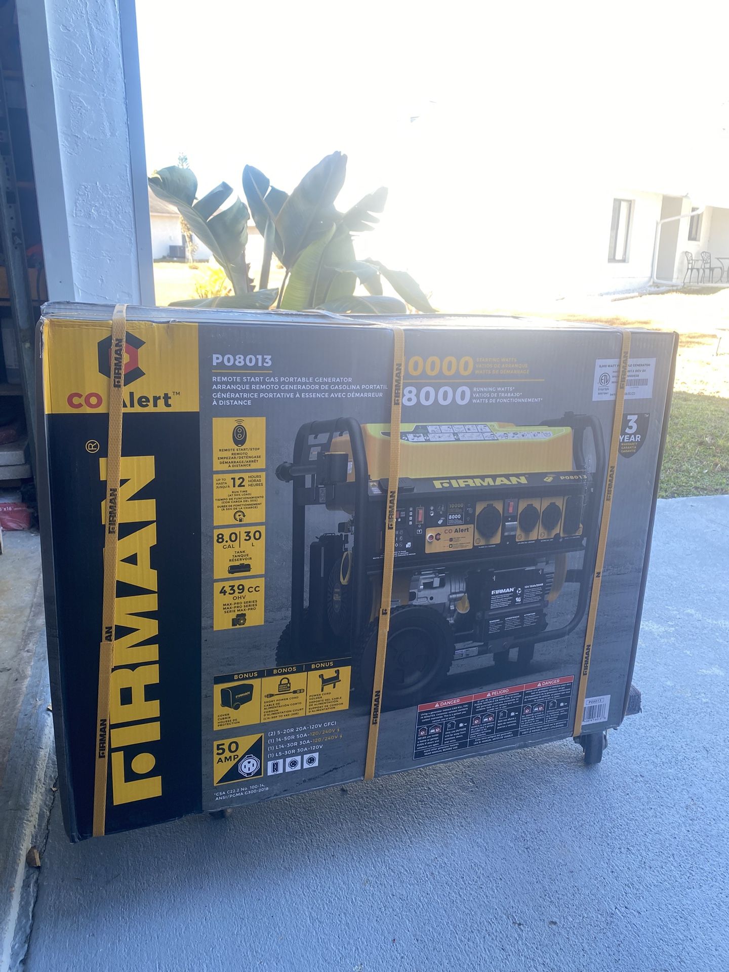 Literally brand new gasoline powered generator. Remote start. 50 amp.