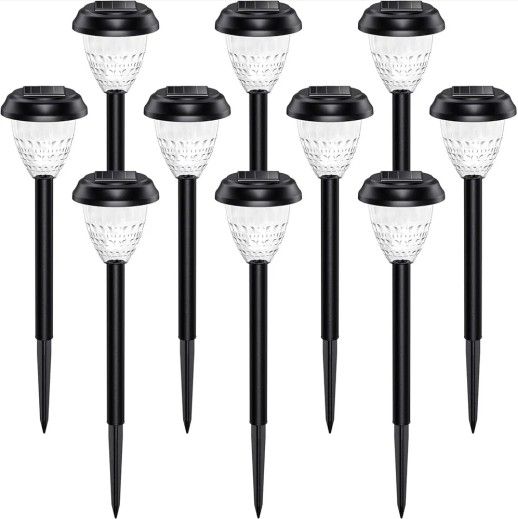 NEW Super Bright Solar Lights, Solar Powered Waterproof Auto On/Off 10 Pack, Dusk to Dawn, Up to 12 Hrs, Outdoor, Pathway Garden Lights, LED, Landscape Lighting, Decorative, for Walkway Patio Yard - Cool White