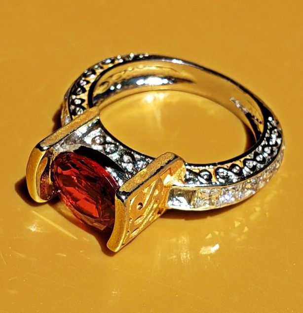 Gold Over Silver Garnet Ring Size 9