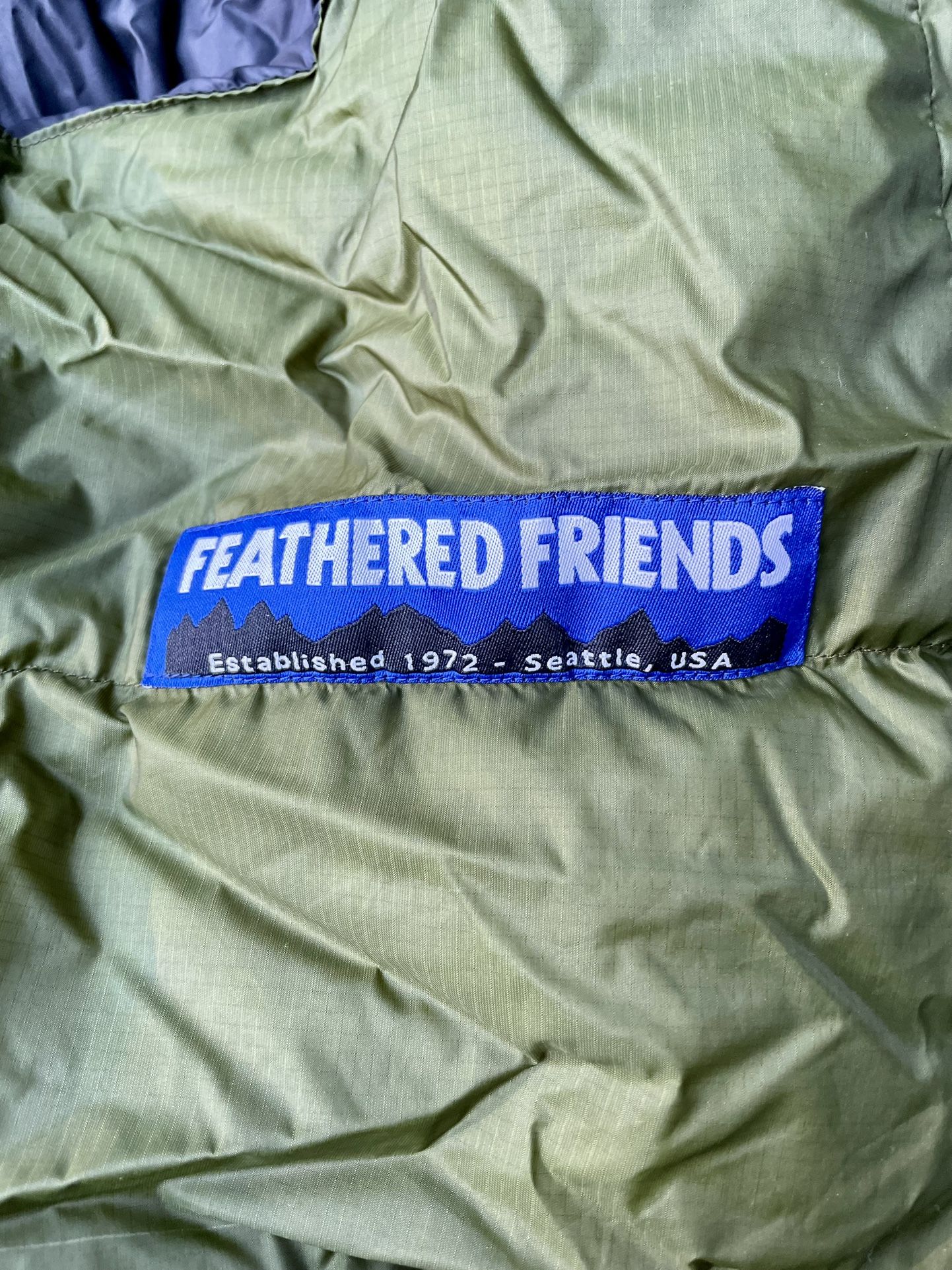Weighs less than a pound! Vireo is FF’s hoodless ultralight bag with variable insulation: 45 degrees on the top and 25 degrees on the bottom. It’s designed to be paired with a down parka for alpine bivys. Condition is unused but came with two small snags I had professionally repaired by FF in Seattle - one patch near the collar and one stitch up at the base that’s unnoticeable. Original MSRP $450