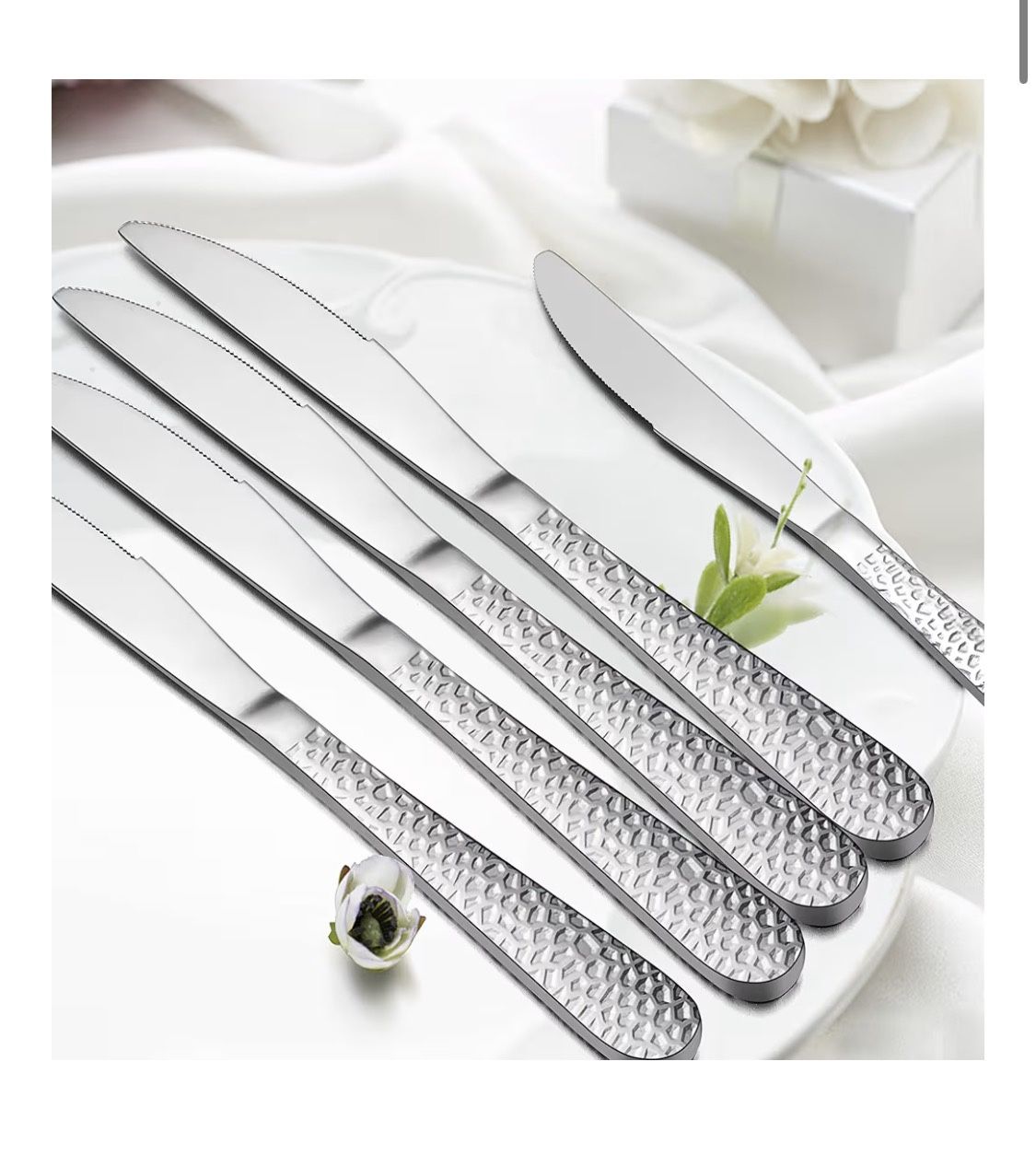 E-far Dinner Knives Set of 12, Stainless Steel Hammered Serrated Table Knife for Home Kitchen Restaurant, Mirror Polished & Dishwasher safe-8.9 Inches