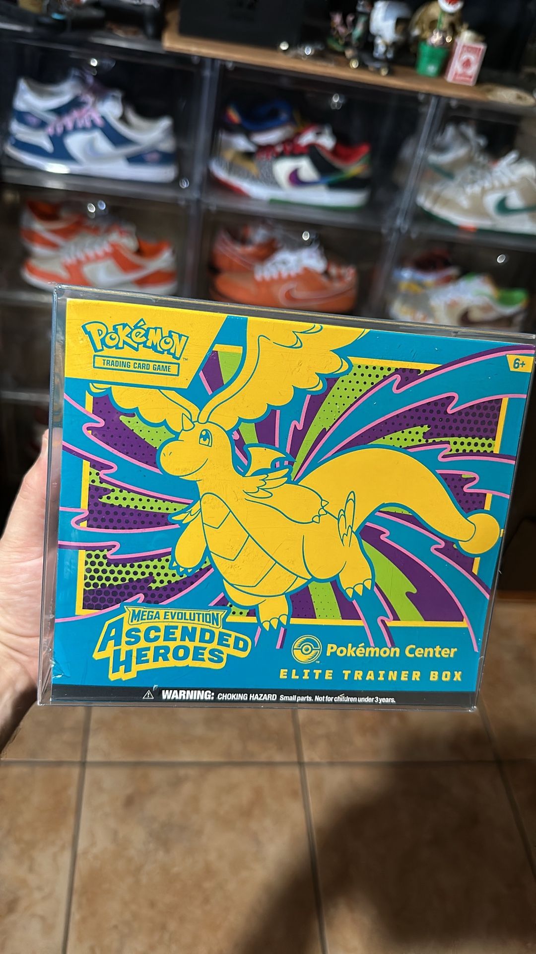 PLEASE READ!! Pokemon Ascended Heroes Pokemon Center Elite Trainer Box (Exclusive) With Tear On Bottom Left Shown In Picture Asking $270 DM IF INTERESTED NO TRADES I also have a flawless One With No Tears Or Rips I’m asking $300 for that one