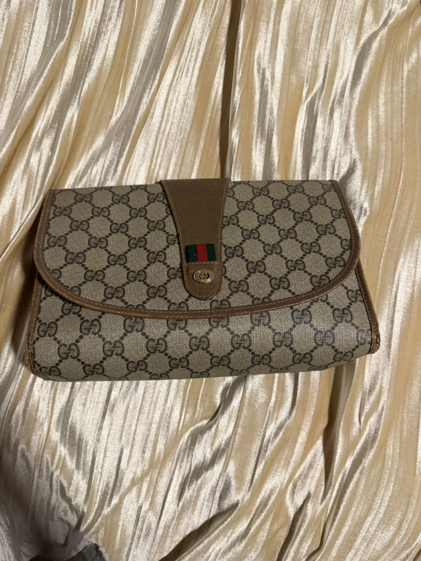 Vintage Gucci Clutch w/ Original Certificate Of Authentication. Beautiful clutch in excellent condition. Brand: GUCCI | Model: Ophidia | Material: FABRIC | Color: BROWN | Condition: GOOD | Dimensions: Length 30 cm × Width 16 cm × Height 7 cm | This item is 100% authentic and has been thoroughly inspected. Perfect for fashion enthusiasts who appreciate luxury and quality.