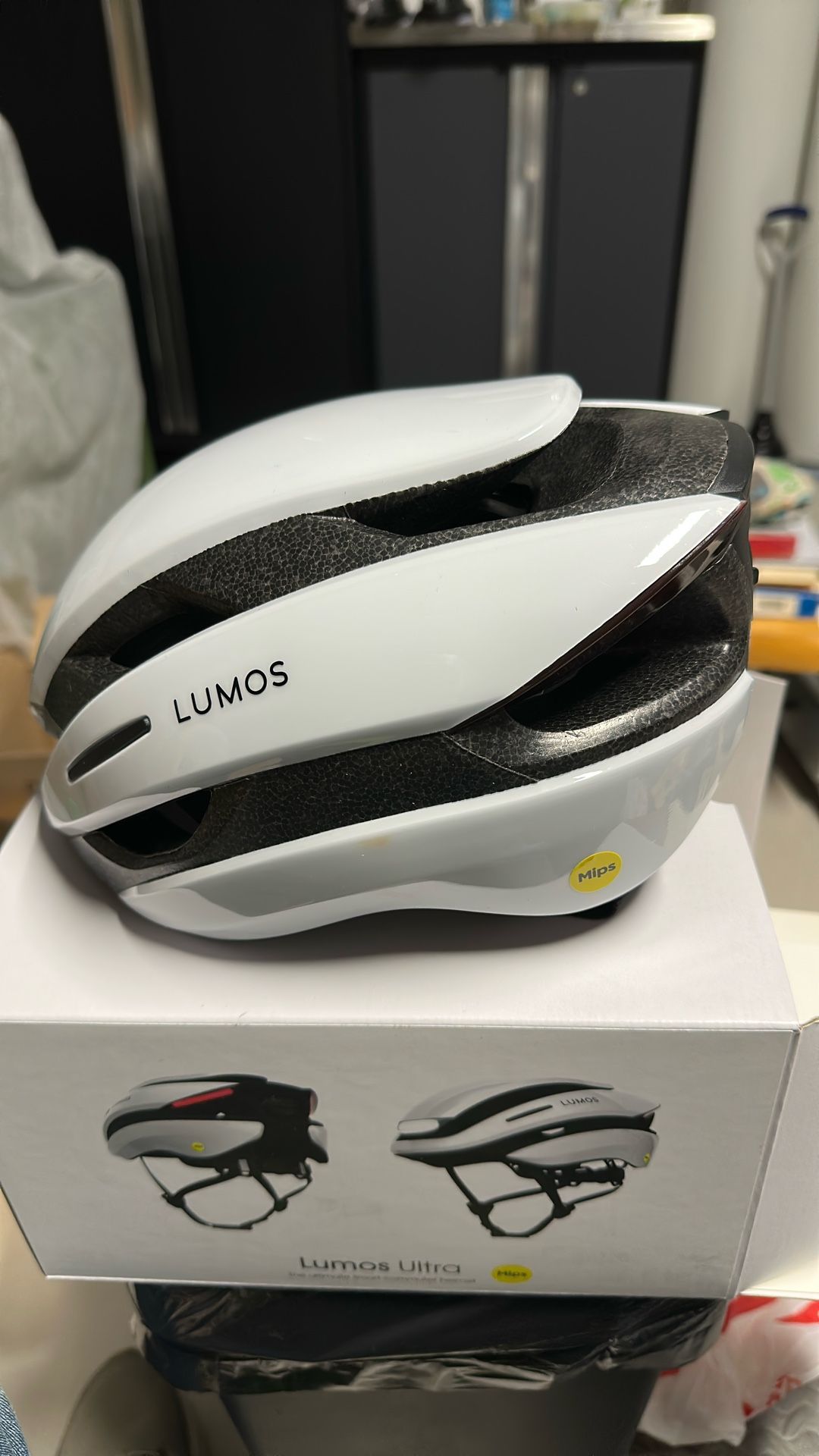 Lumos Ultra Bright White bicycle helmet. Size Small Everything included, Brand New in the box. Past return date too small for me, had to get another one. $155. New in the box Will sell for 100 even