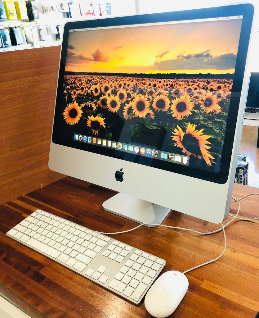 Hi, I am selling Apple iMac 24”, Early 2008, All In One Computer. I factory reset it so it’s like new and all accounts and data is removed. It is fully functional you can come and test it out no issues. This is really good for students/ Work/ Business/ Video Editing/ Photo Editing/ Audio Recording and Graphic Designing. Specs: OS X El Capitan 10.11 3.06 GHz intel core 2 duo processor 4 GB ram DDR2 1 TB HDD NVIDIA GeForce 8800 GS 512 MB Bluetooth// WiFi FaceTime // iMessage CD-DVD Drive 3 USB Ports// Display port// Two FireWire 800 port// Ethernet port// 3.5mm Headphone port. If you are interested message me.