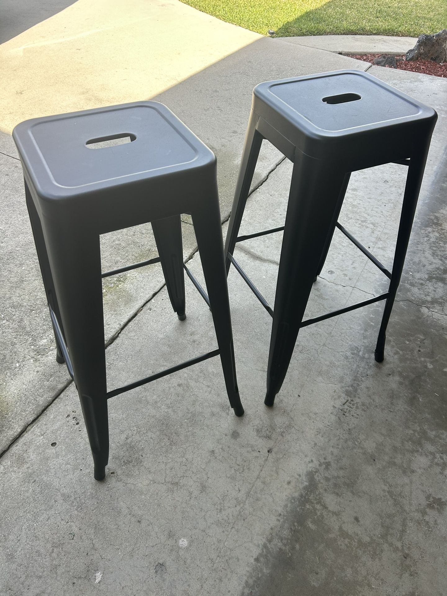 Heavy metal bar stools. I have two left at $30 each firm or two for $50. Can’t beat that deal as I paid $60 each on Amazon 3 months ago. Never used them.