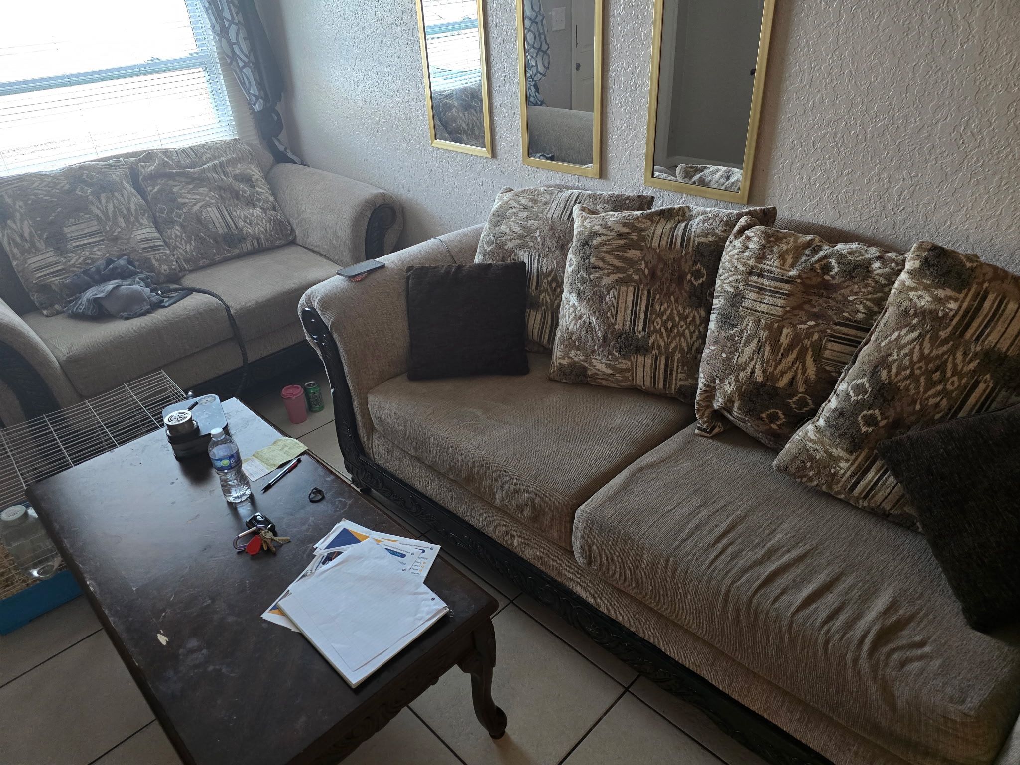 Couch and loveseat.Normal wear and tear. Coffee table and 2 end tables includes. Minor scratches on coffee table.