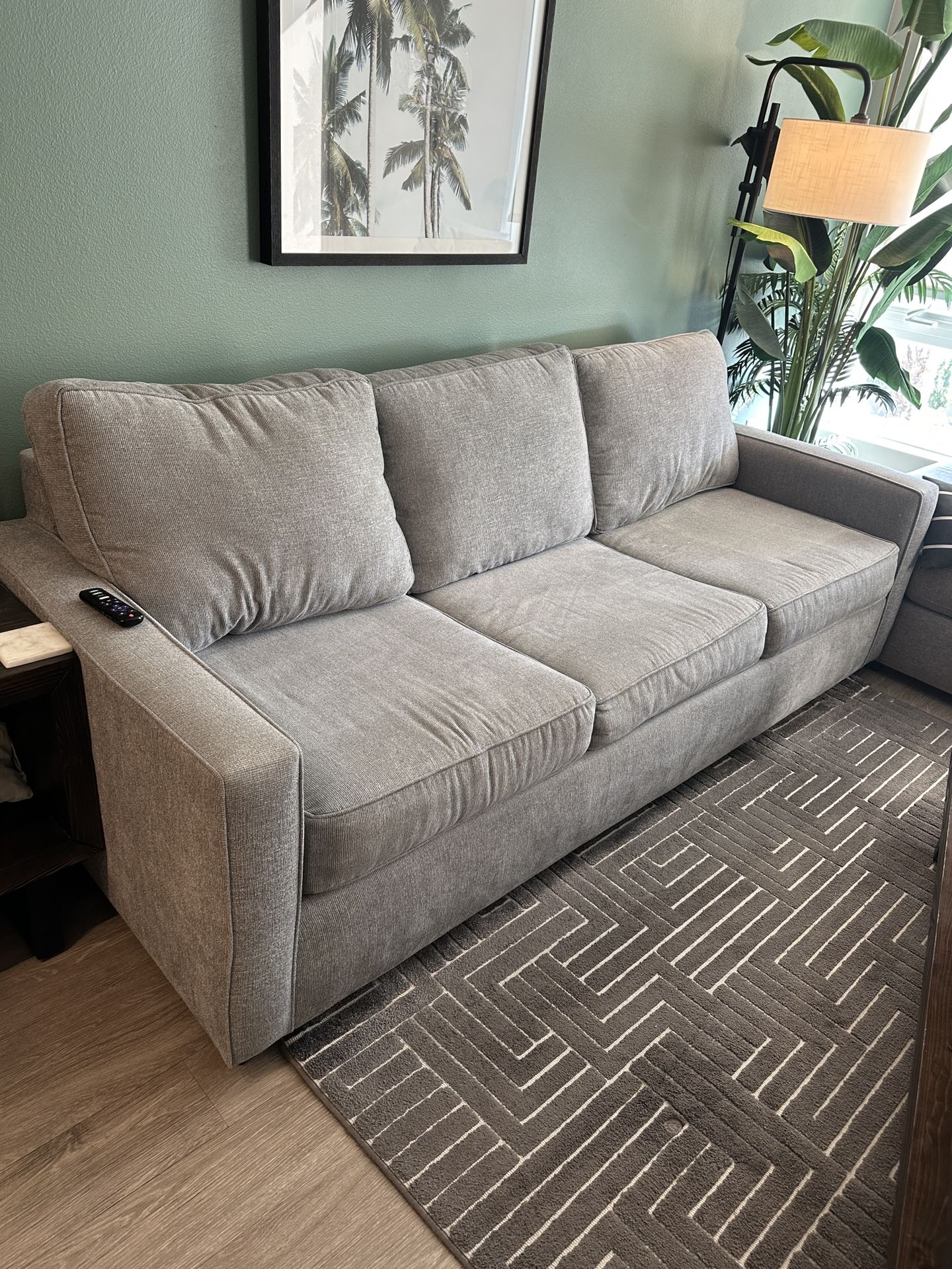 Originally purchased for 1,200 Sofa 93” wide arm to arm 83” seating area 25.75” top of arm 30.75” top of back rest 18.5” to top of seat cushion Cushions are 26.5”x26.5” Pull out has a Full foam mattress